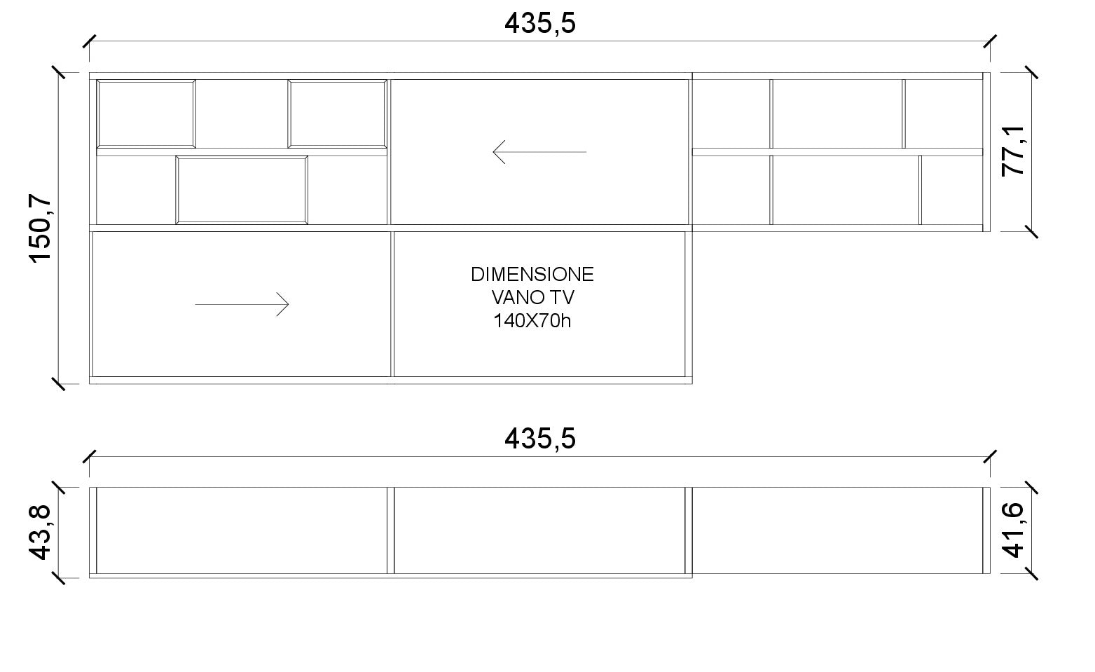 Il soggiorno Alf Dafrè My Space costituito da contenitore sospeso caratterizzato da due grandi ante scorrevoli che permettono di nascondere o svelare sezioni diverse della composizione.