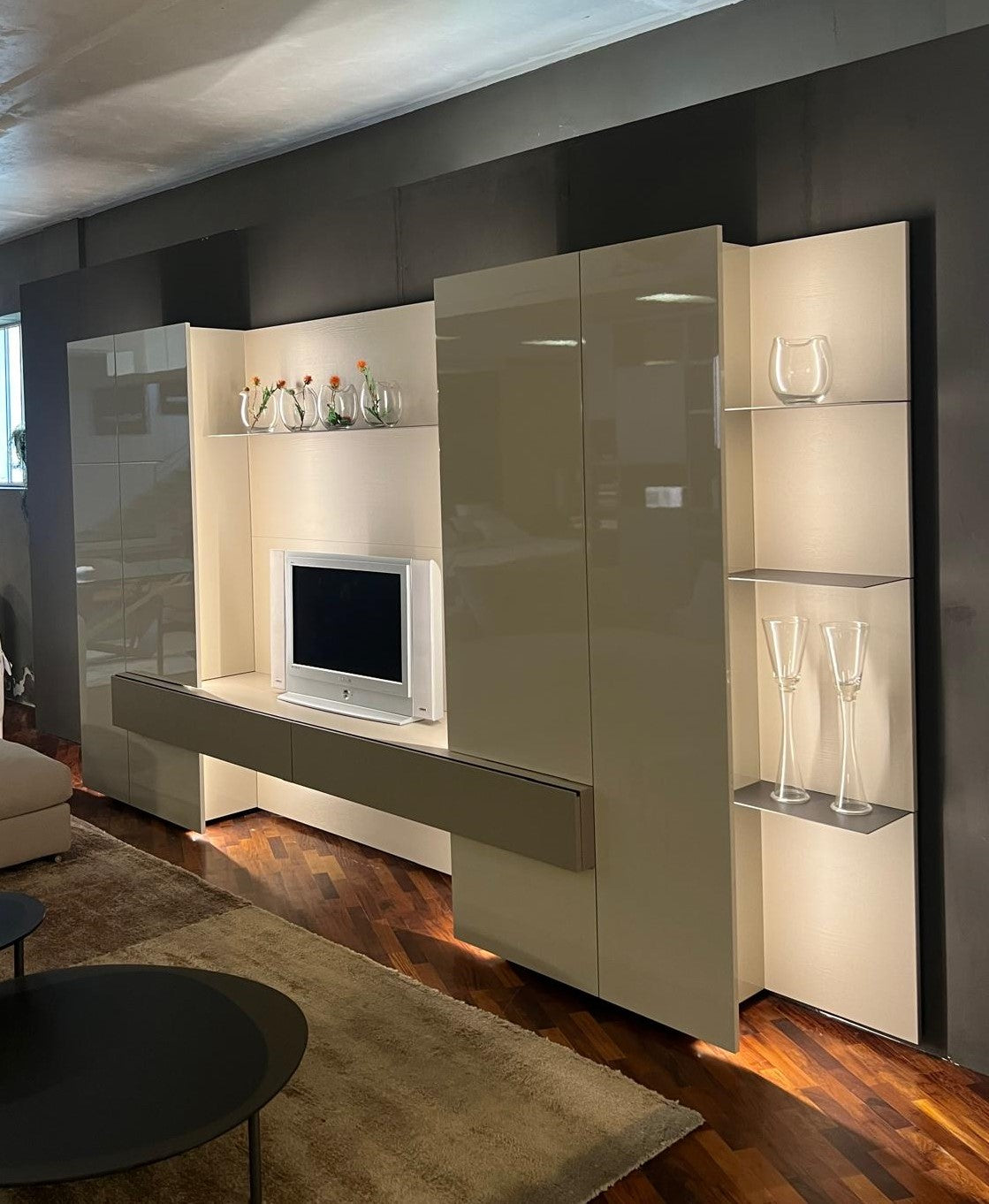 Le finiture disponibili includono il laccato opaco, il lucido e il laccato opaco poro aperto, permettendo di personalizzare la parete attrezzata secondo i tuoi gusti personali. Queste opzioni di finitura non solo aggiungono un tocco estetico distintivo ma garantiscono anche una lunga durata nel tempo.
