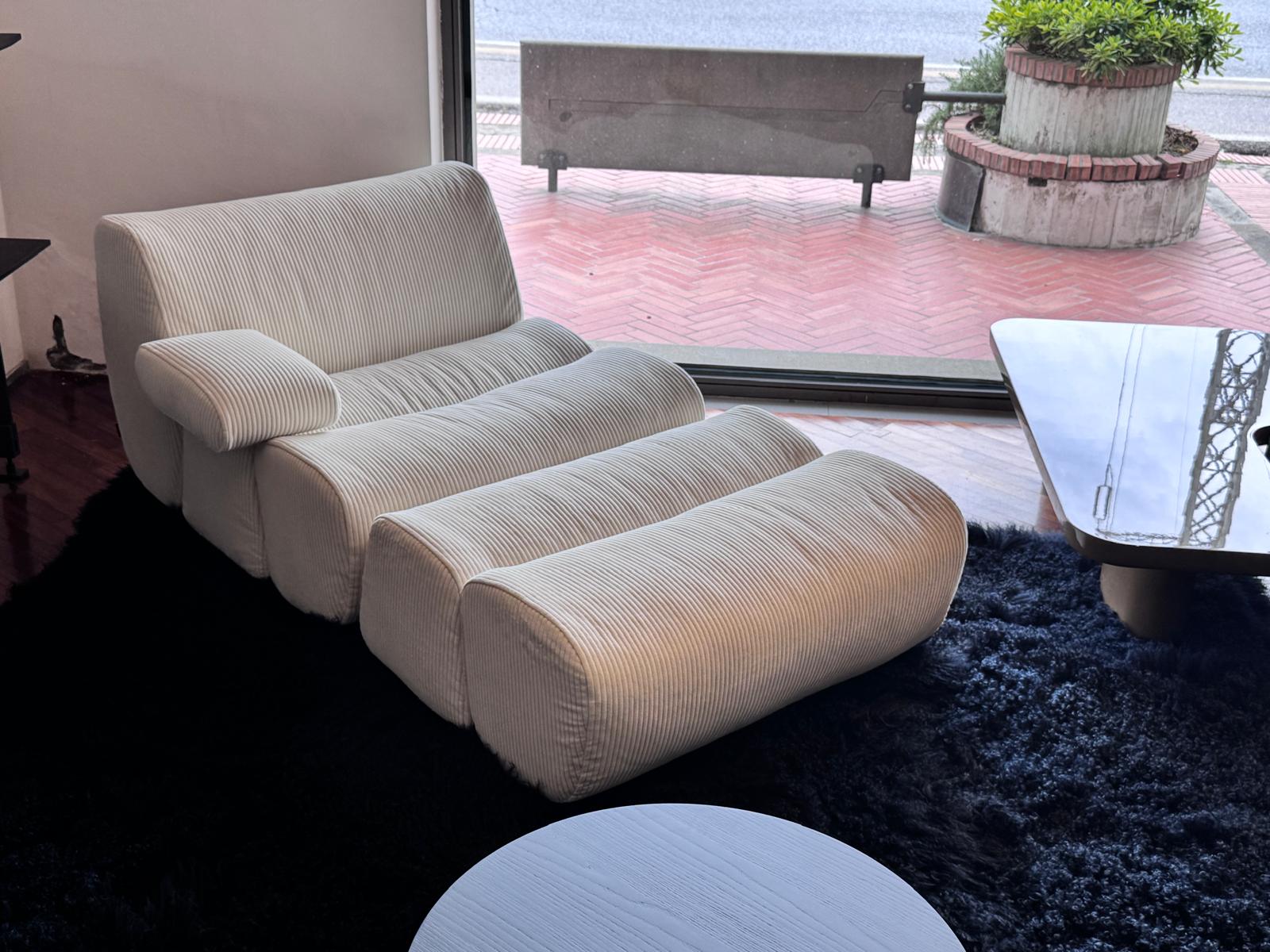 La chaise longue Poliform Ernest, disegnata da Jean-Marie Massaud, rappresenta un'interpretazione audace del comfort moderno. Questo pezzo d'arredo si distingue per la sua modularità, che consente di creare configurazioni personalizzate, adattandosi perfettamente a qualsiasi spazio abitativo. I volumi morbidi e destrutturati richiamano la sensazione avvolgente di un cuscino in piuma, offrendo un comfort naturale e rilassante.