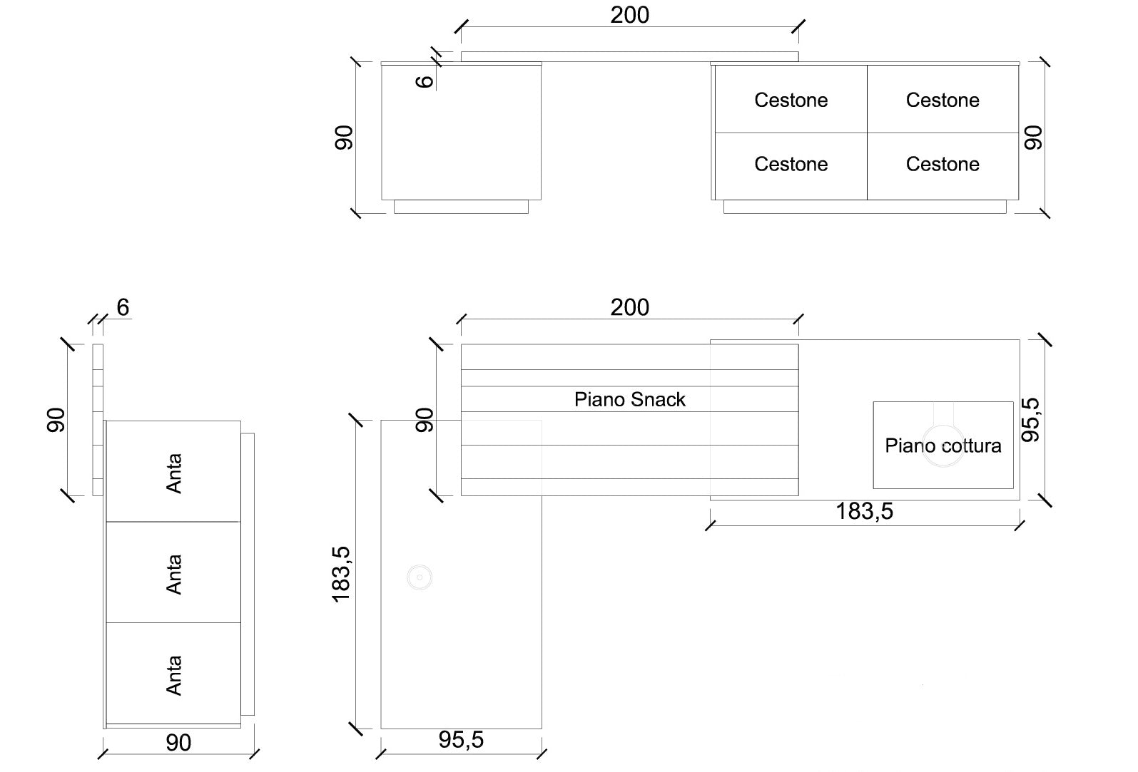 La dimensione delle due isole è di cm largh 183,5x95,6 prof le due isole possono essere posizionete nella stanza liberamente.