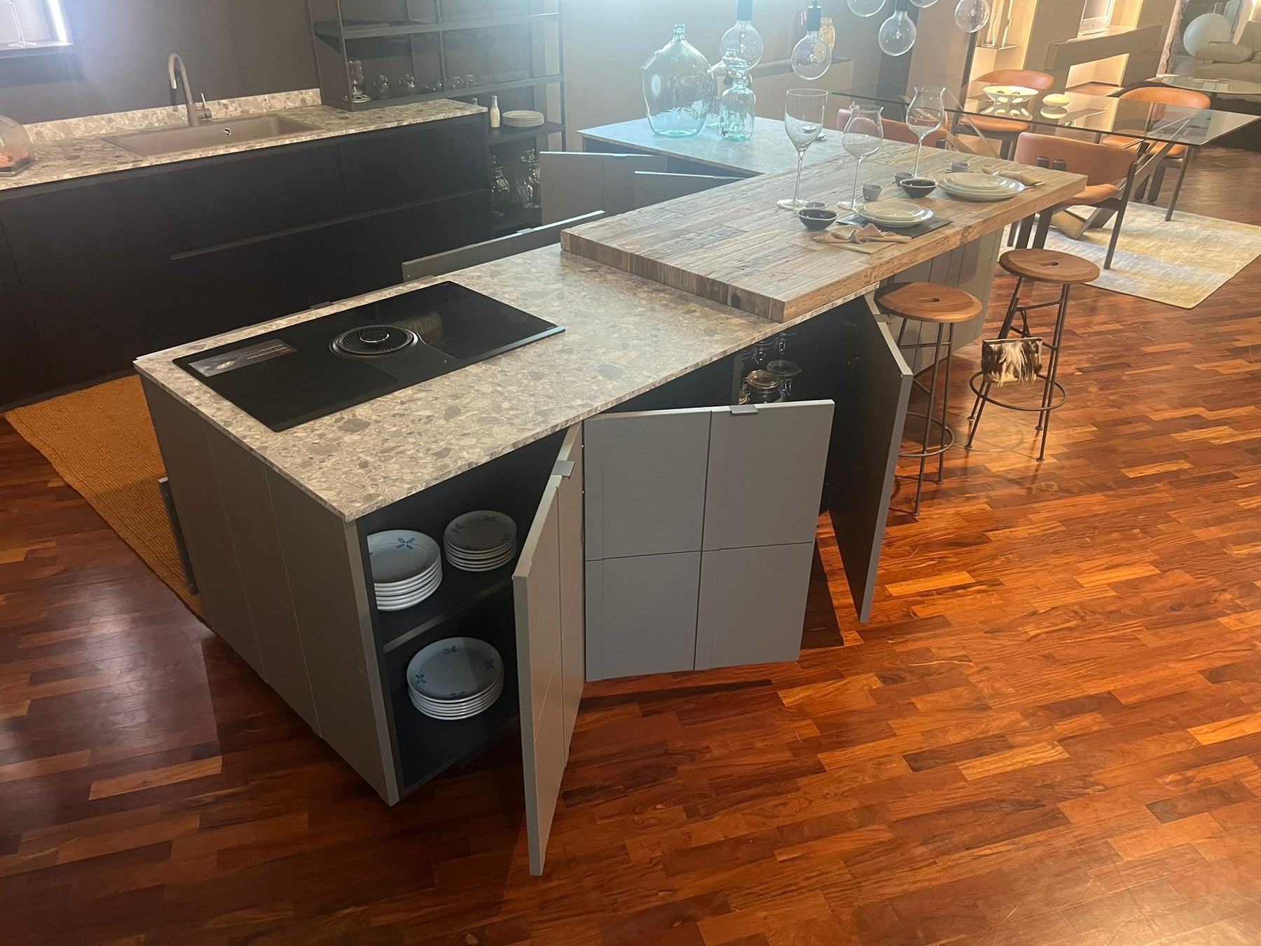 Questa cucina è attualmente disponibile in offerta per rinnovo expo, rappresentando un'opportunità unica per portare nella tua casa un pezzo di design esclusivo e funzionale.