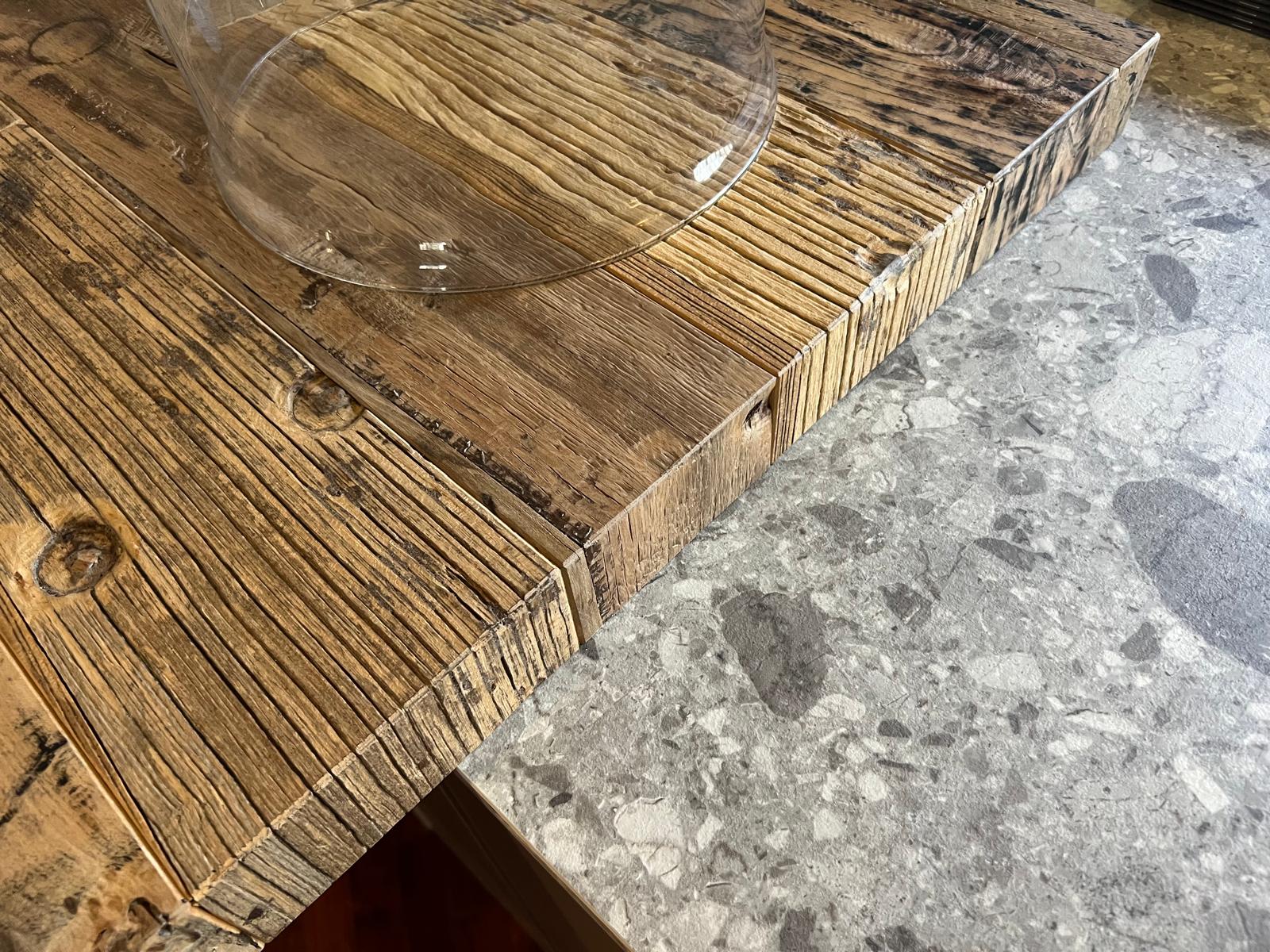 Il piano in olmo antico misura cm 200x90 e può essere posizionato liberamente.